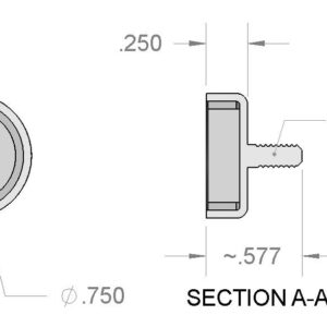 Dimensions | Diameter = 3/4″ (0.750″) Threaded Male Stud = #6-32 UNC 2A Height = 1/4″ (0.250″) |