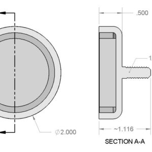 Dimensions | Diameter = 2″ (2.00″) Threaded Male Stud = 1/4″-20 UNC 2A Height = 1/2″ (0.50″) |