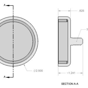 Dimensions | Diameter = 2 1/2″ (2.50″) Threaded Male Stud = 3/8″-16 UNC 2A Height = 5/8″ (0.625″) |