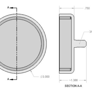Dimensions | Diameter = 3″ (3.00″) Threaded Male Stud = 3/8″-16 UNC 2A Height = 3/4″ (0.750″) |