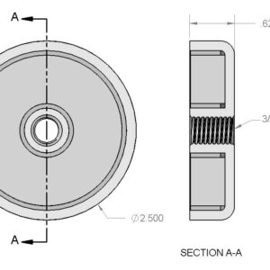 Dimensions | Diameter = 2 1/2″ (2.50″) Internal Thread Size = 3/8″-16 UNC 2B Height = 5/8″ (0.625″) |