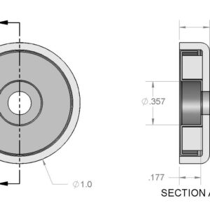 Dimensions | Diameter = 2″ (2.00″) Internal Thread Size = 1/4″-20 UNC 2B Height = 1/2″ (0.5″) |