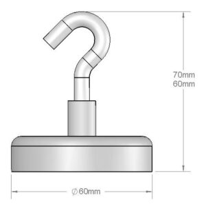 Dimensions | D=60mm (2.36″) H=66mm (2.60″) M=8mm (0.32″) (M8 Coarse threaded hook) |