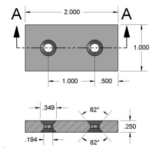 | Dimensions | 2″ x 1″ x 1/4″ thick w/ holes to accept #8 screws |