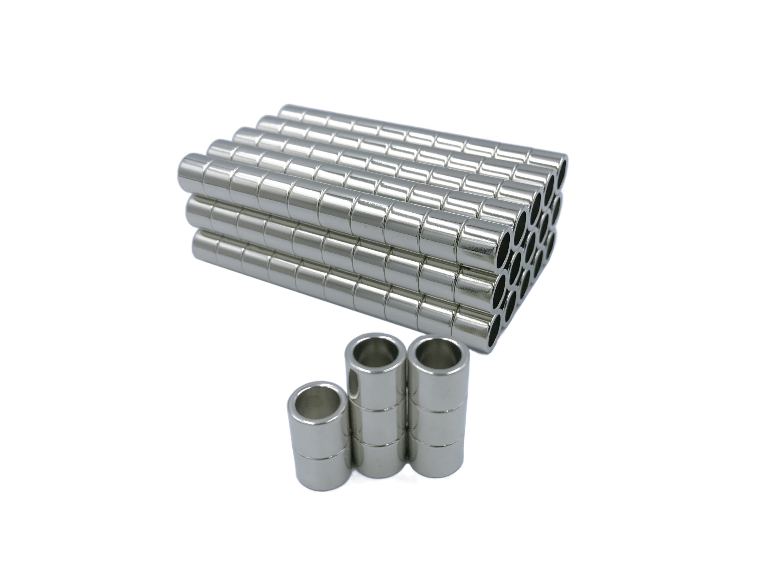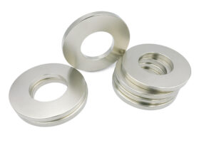 Neodymium Ring Magnet is a disc/cylinder magnet with a hollow center, the quantity, position and diameter of the holes can be customized according to customers’ applications. Without particular requirements, the hole is centrally located, but we are capable to place the hole at any position on the disc/cylinder.