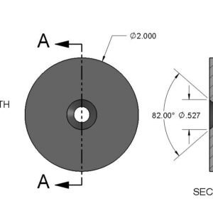 Dimensions | 2″ OD x 0.281″ ID x 0.527″ OD x 1/2″ thick w/ hole to accept 1/4″-20 screw |