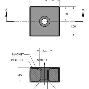 Dimensions | 1″ x 1″ x 1/2″ thick w/ hole to accept #8 screws |