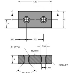 Dimensions | 2″ x 1″ x 1/2″ thick w/ holes to accept #8 screws |