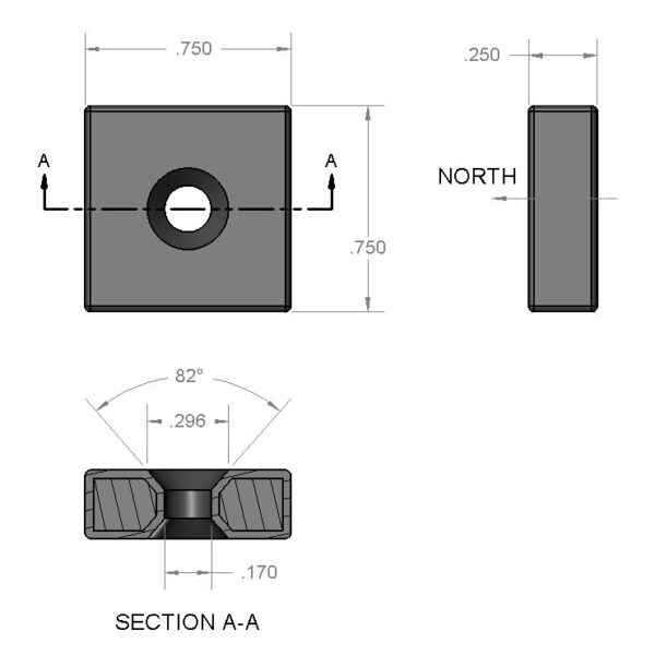 Dimensions | 3/4″ x 3/4″ x 1/4″ thick w/ hole to accept a #6 screws |