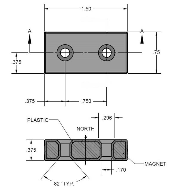 Dimensions | 1 1/2″ x 3/4″ x 3/8″ thick?w/ holes to accept #6 screws |