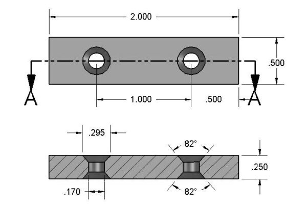 Dimensions 2″ x 1/2″ x 1/4″ thick w/ holes to accept #6 screws