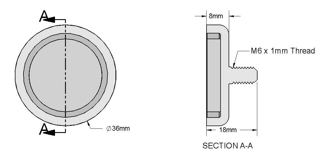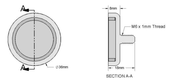 Dimensions | D=36mm (1.42″) M=6mm (0.24″) (M6 Coarse Male threaded stud) H=18mm (0.71″) h=8mm (0.31″) |