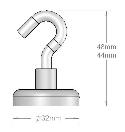Dimensions | D=32mm (1.26″) H=47mm (1.85″) M=6mm (0.24″) (M6 Coarse threaded hook) |