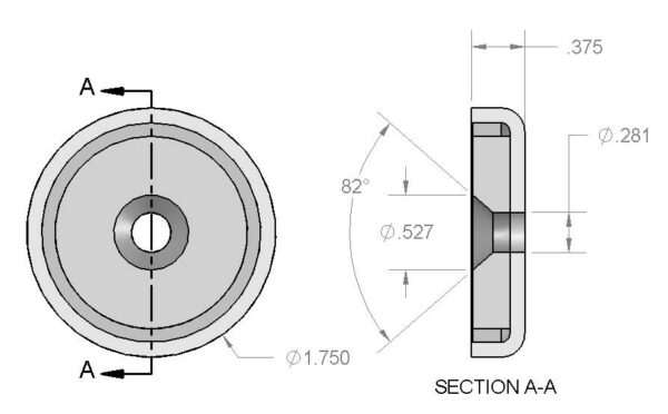 Dimensions | Diameter= 1 3/4″ (1.75″) Hole Size= 1/4″ Screw Height= 3/8″ (0.375″) |