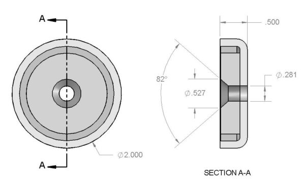 Dimensions | Diameter= 2″ (2.00″) Hole Size= 1/4″ Screw Height= 1/2″ (0.500″) |