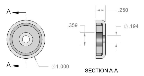 Dimensions | Diameter = 1″ (1.00″) Hole Size = #8 Screw Height = 1/4″ (0.25″) |