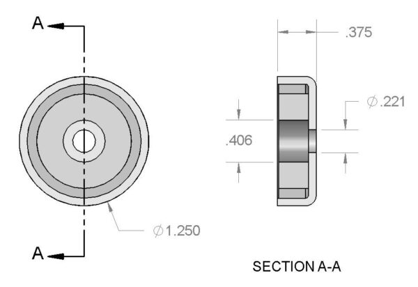 Dimensions | Diameter = 1 1/4″ (1.25″) Hole Size = #10 Screw Height = 3/8″ (0.375″) |
