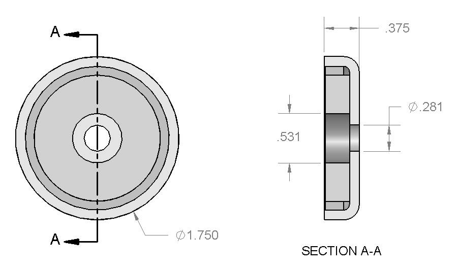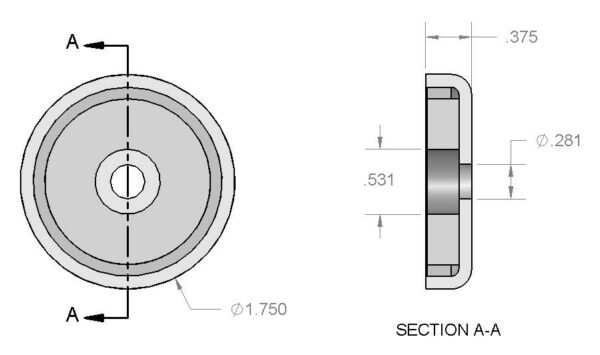 Dimensions | Diameter = 1 3/4″ (1.75″) Hole Size = 1/4″ Screw Height = 3/8″ (0.375″) |