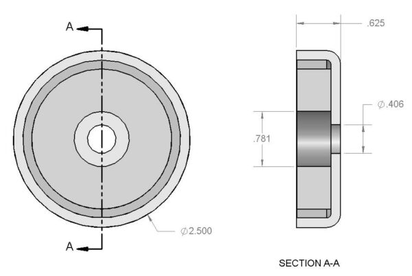 Dimensions | Diameter = 2 1/2″ (2.50″) Hole Size = 3/8″ Screw Height = 5/8″ (0.625″) |