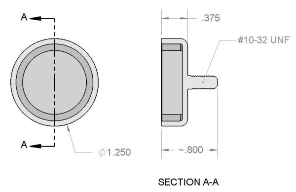Dimensions | Diameter = 1 1/4″ (1.25″) Threaded Male Stud = #10-32 UNF 2A Height = 3/8″ (0.375″) |