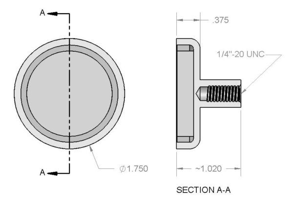 Dimensions Diameter = 1 3/4″ (1.75″) Threaded Female Stud = 1/4″-20 UNC 2B Height = 3/8″ (0.375″)