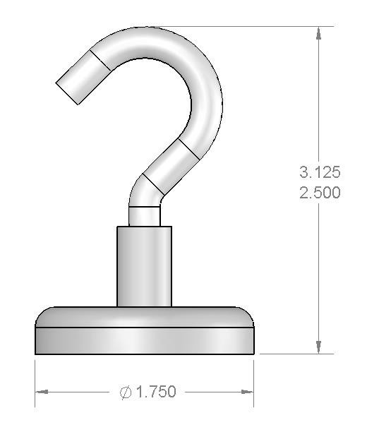 Dimensions | Diameter = 1 3/4″ (1.75″) Height = 3″ (3.0″) Hook Attachment = 1/4″-20 Threaded Open Hook |
