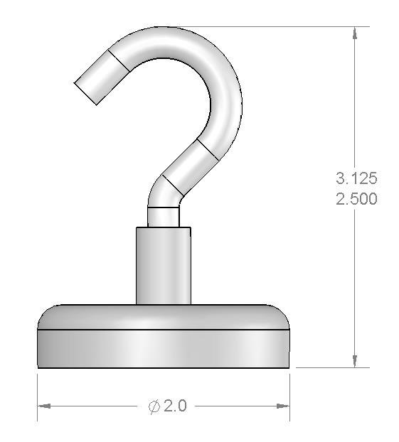 Dimensions Diameter = 2″ (2.00″) Height = 3″ (3.0″) Hook Attachment = 1/4″-20 Threaded Open Hook