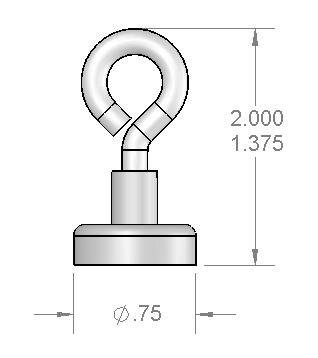 Dimensions | Diameter = 3/4″ (0.75″) Height = 1 7/10″ (1.70″) Hook Attachment = #6-32 Threaded Eye Hook |