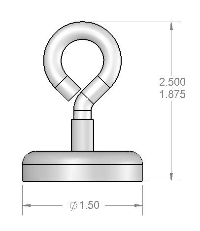 Dimensions | Diameter = 1 1/2″ (1.50″) Height = 2 1/4″ (2.25″) Hook Attachment = #10-32 Threaded Eye Hook |