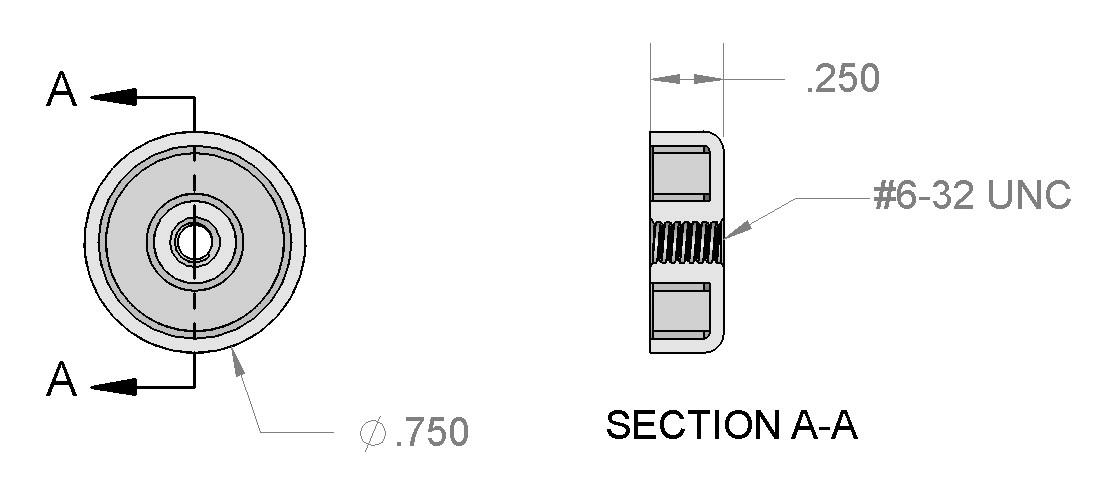 Dimensions Diameter = 3/4″ (0.750″) Internal Thread Size = #6-32 UNC 2B Height = 1/4″ (0.250″)