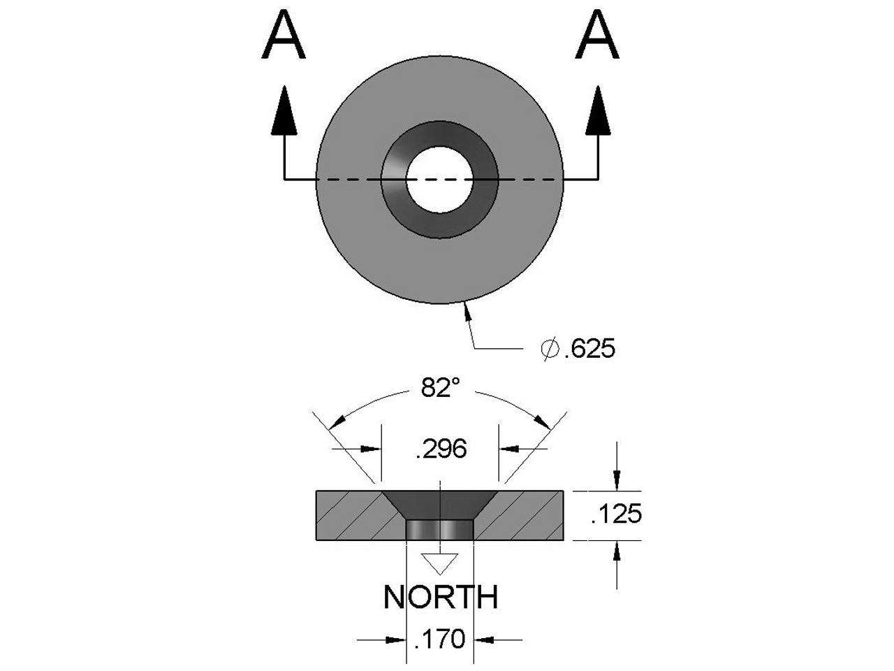 | Dimensions | 5/8″ od x 1/8″ thick with countersunk hole for #6 screw |