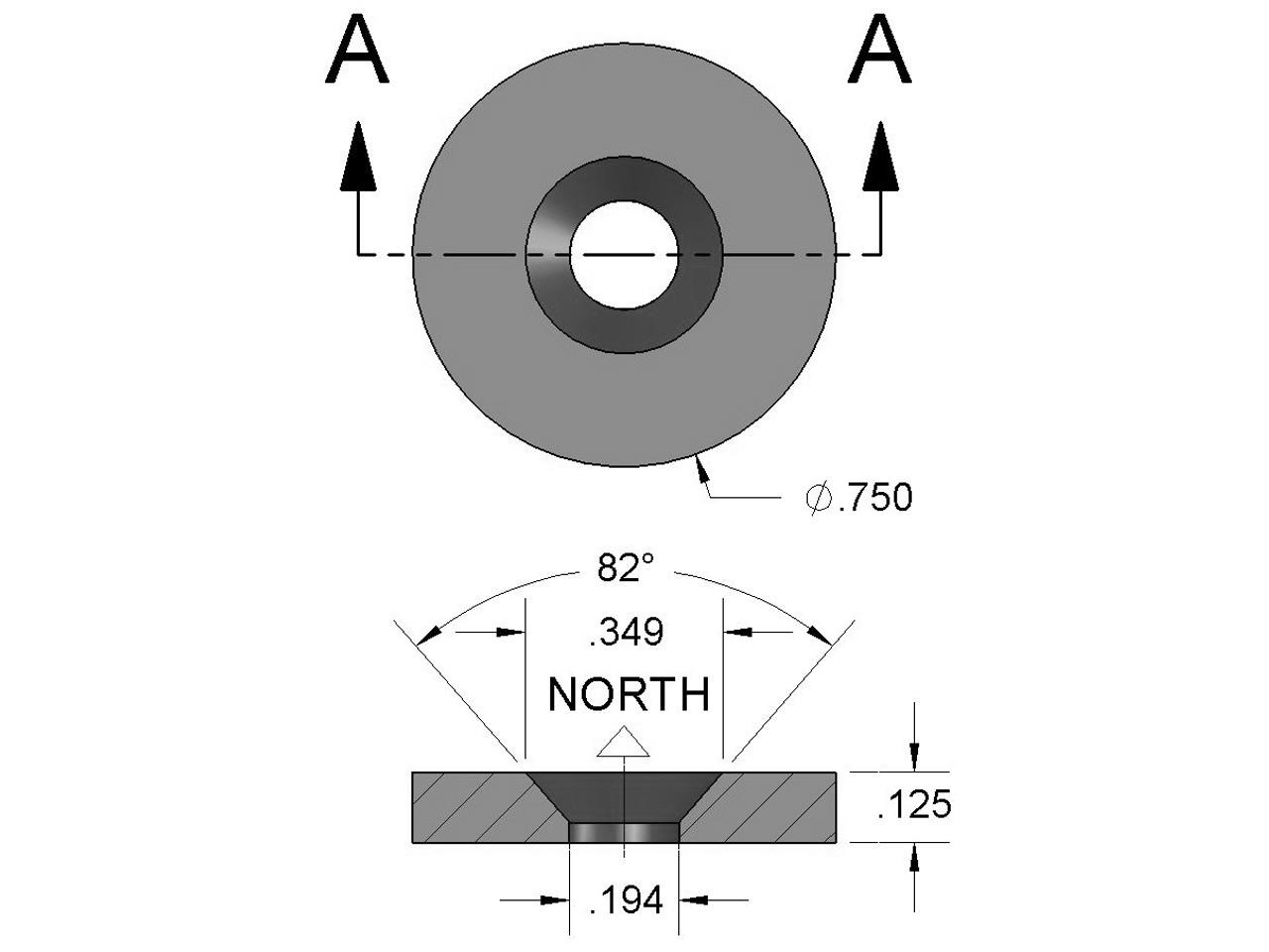 | Dimensions | 3/4″ od x 1/8″ thick with countersunk hole for #8 screw |
