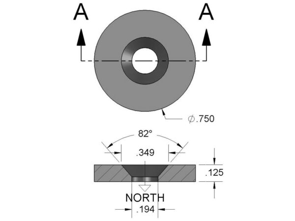 Dimensions | 3/4″ od x 1/8″ thick with countersunk hole for #8 screw |