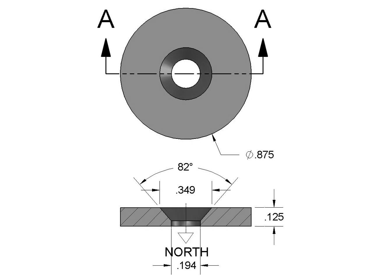 Dimensions | 7/8″ od x 1/8″ thick with countersunk hole for #8 screw |