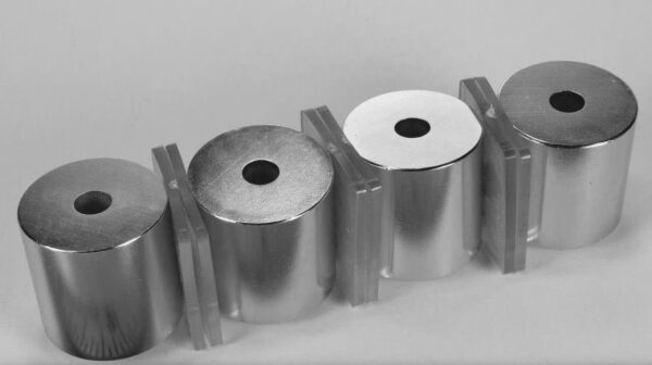 The RX04X0DIA rings feature a unique diametrical magnetization, with the magnetization running perpendicular to the hole’s axis. This design situates the poles on contrasting sides of the ring’s surface. Perfectly suited for shaft placements, these rings excel at interfacing with sensors or aiding in electricity generation.