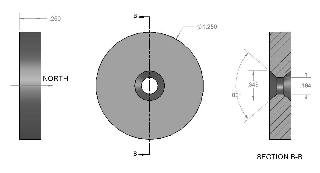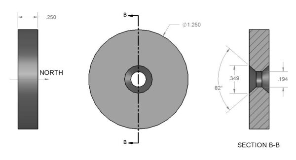 Dimensions 1 1/4″ od x 0.194″ id x 0.349″ id x 1/4″ thick w/ hole to accept #8 screw